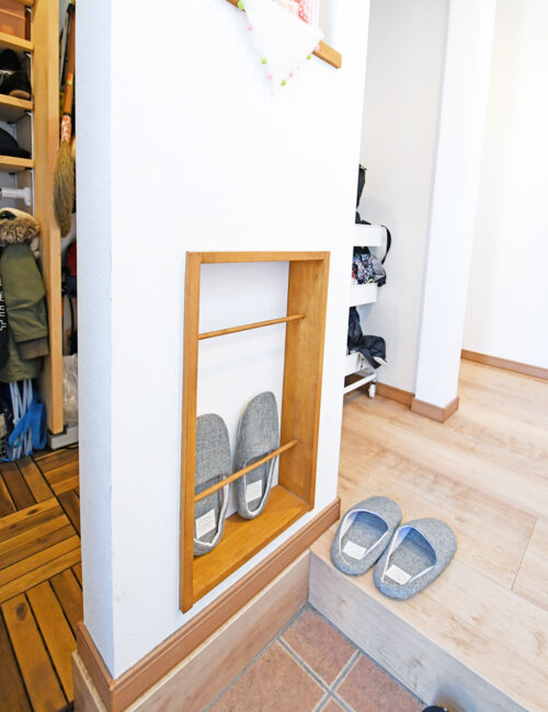 ▲造作のスリッパ用のニッチなど、こだわりがたくさん!
