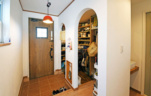 ▲大容量のシューズクロークも造作のアーチの入口でおしゃれに。