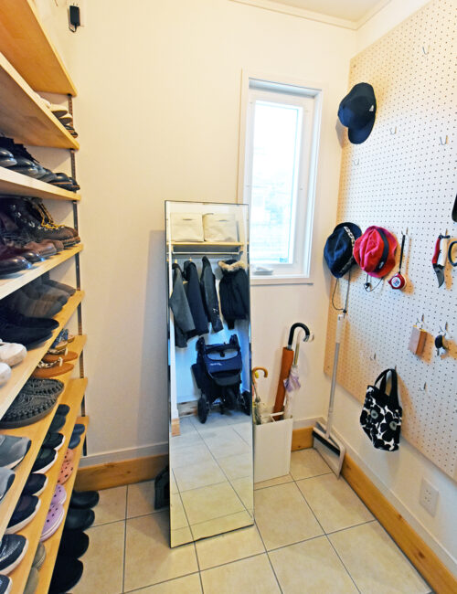 ▲シューズクロークにはDIYボードを付けてオシャレに収納。