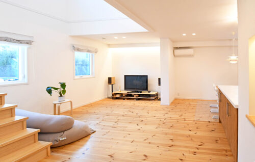 無垢のパイン材で優しい雰囲気のあるリビングに!