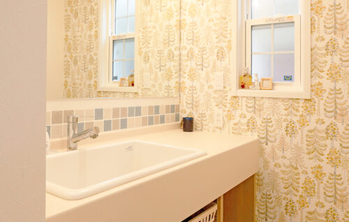 ▲広々大きなコグマオリジナルの洗面台はふたり並んでも大丈夫♪