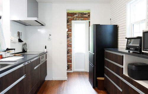 ▲キッチン横のパントリーから外へ出られる勝手口。