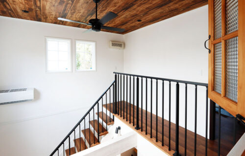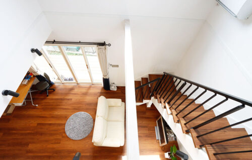▲2Fの居室からリビングを見下ろせる内窓も、