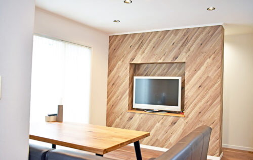 ▲造作だから出来る細かな要望が詰まったテレビ壁。