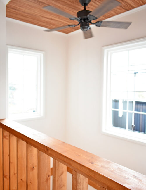 ▲リビング上の吹抜けには梁&シーリングファン☆