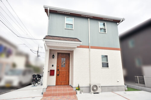▲アンティークグリーンとやわらかい白の外壁がオシャレ◎
