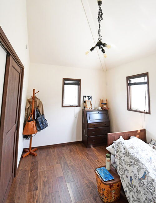 ▲勾配天井がオシャレなヴィンテージ感のある洋室。