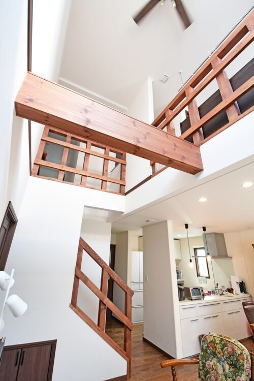 ▲階段には大工さん手づくりの頑丈な手摺が作られました。