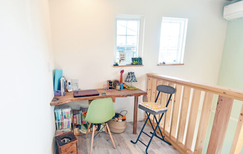 ▲2階の広いホールは、デスクを置いてワークスペースとして利用♪