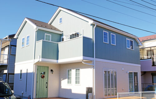 ▲さわやかなブルー×ホワイトのツートーンカラーの外壁