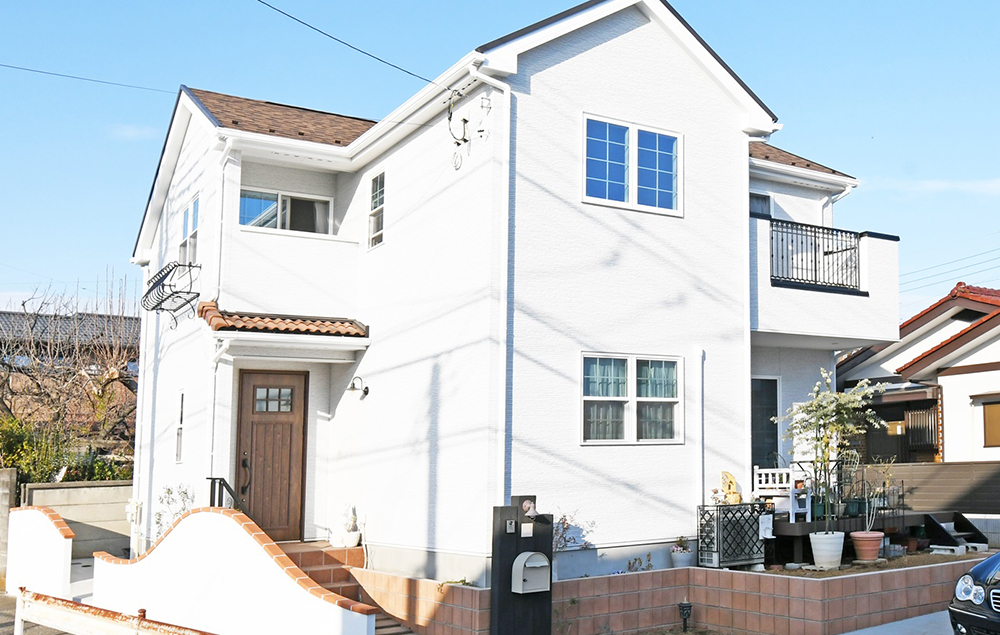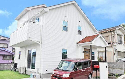 ▲外観はアメリカンスタイル♪明るい印象を与えるホワイト。