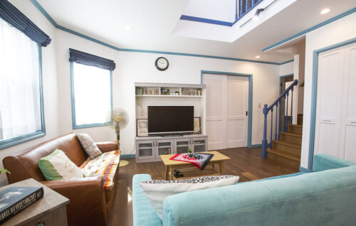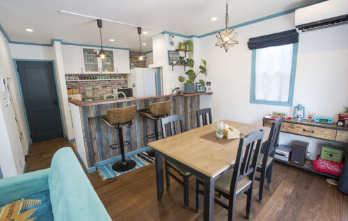 アーリーアメリカンの外観にオールドアメリカンな内装の家