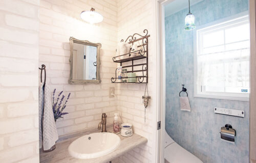 こだわりのターコイズブルーで仕上げた輸入階段手摺。