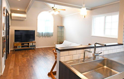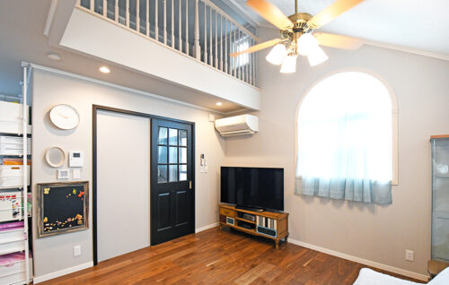 ロフトの手すりもオシャレだし、リビングの半円の窓もかわいいです。
