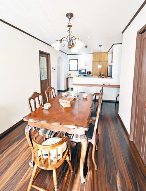 ダイニングの天井にはお施主様こだわりのクラシカルなシャンデリア♪