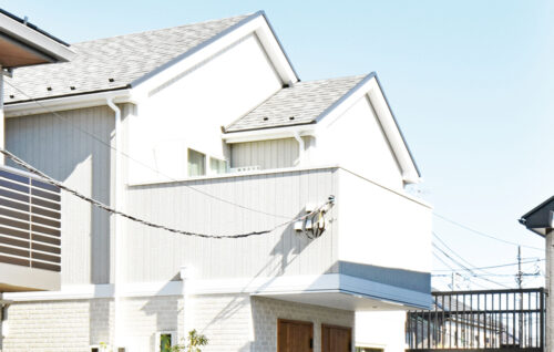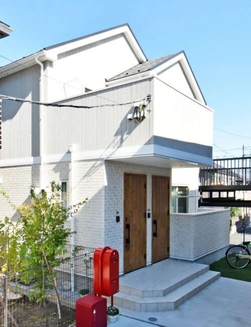 ▲木目調とレンガ調を貼り分けたオシャレな外観