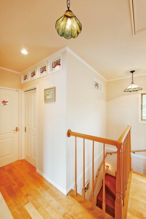 ▲奥様の作られたステンドグラスをはめ込んでいます