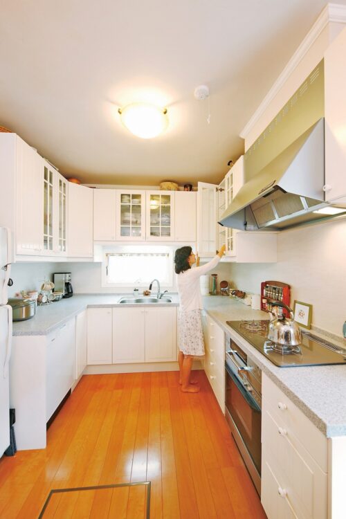 ▲奥様こだわりの 真っ白なコの字型 キッチン